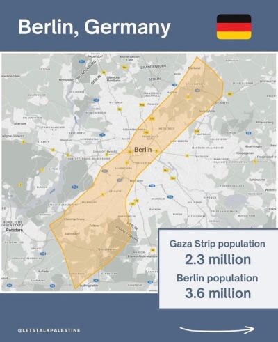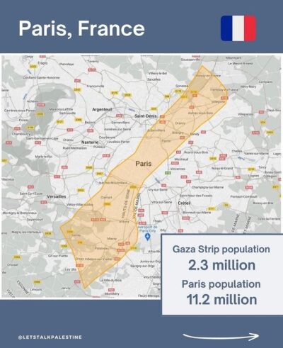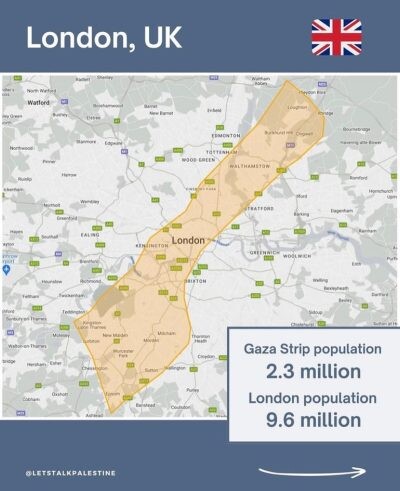 @letstalkpalestine colocou o tamanho de Gaza em perspectiva para mostrar quão densamente povoada é a área.