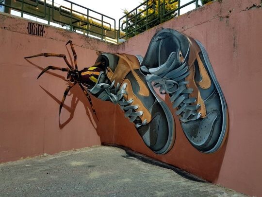 O português Odeith, também conhecido como Sérgio Odeith, ganhou reconhecimento internacional pelas suas impressionantes peças de graffiti 3D que desafiam os limites da perceção.